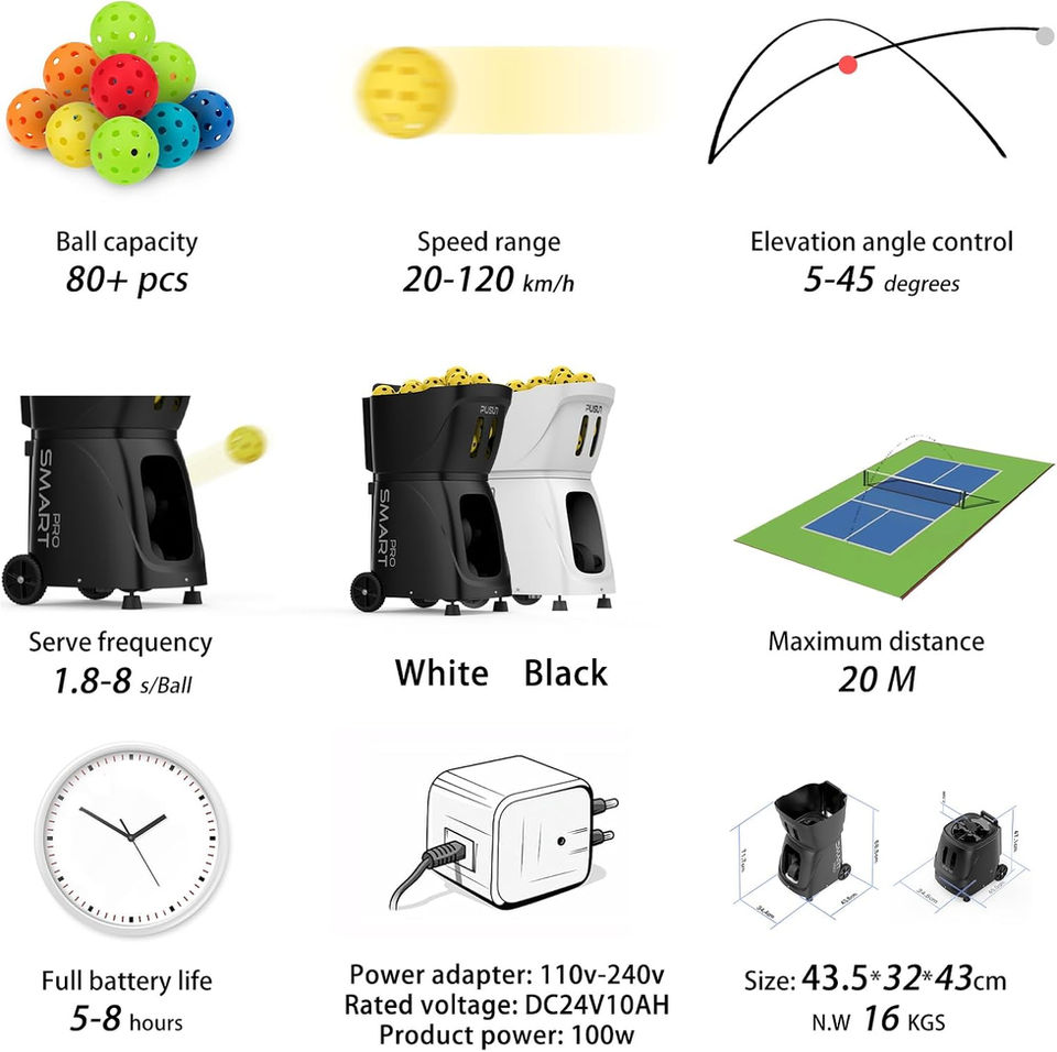 Step into a new dimension of PickleBall training with the PUSUN PP Smart Pro. This state-of-the-art machine is thoughtfully designed for both budding tennis players and experienced coaches. More than just a ball machine, the PP-Smart Pro acts as your personal, on-demand trainer, ready to elevate your skills anytime, anywhere.